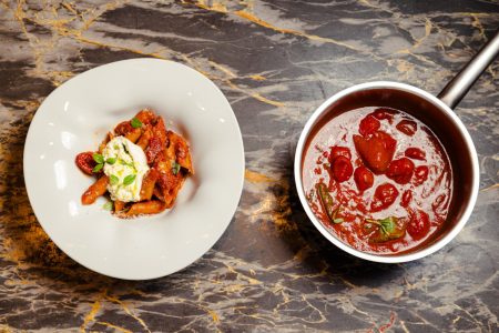 Μπορεί οι περισσότεροι να ξέρουμε την caprese ως μια από τις πιο διάσημες ιταλικές σαλάτες, όμως η Μάγκυ Ταμπακάκη μάς την έκανε σάλτσα σε ένα απολαυστικό πιάτο με πένες και φρέσκια μπουράτα.