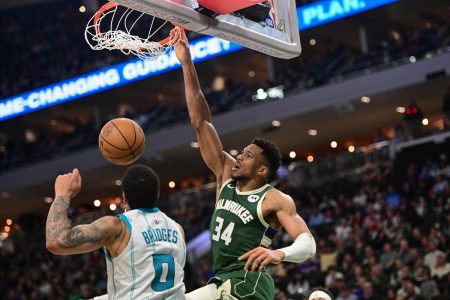 Δίχως να πατήσει το πόδι στο γκάζι ο Γιάννης Αντετοκούνμπο άγγιξε ξανά το double-double σε μόλις 24 λεπτά συμμετοχής και οδήγησε τους Μπακς στη νίκη με 123-85 κόντρα στους Χόρνετς.