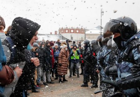 Αστυνομικοί των μονάδων αντιμετώπισης ταραχών διέλυσαν διαδηλώσεις σήμερα σε ολόκληρη τη Ρωσία, υπέρ του επικριτή του Κρεμλίνου Αλεξέι Ναβάλνι, συλλαμβάνοντας περισσότερους από 5.000 ανθρώπους, που αψήφησαν το τσουχτερό κρύο και την απειλή της καταστολής για να ζητήσουν την απελευθέρωσή του.