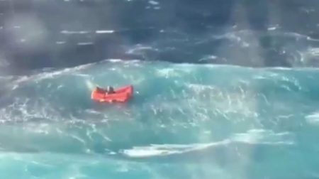 Οι επιβάτες του επιβατηγού πλοίου αντίκρισαν τον ναυαγό πάνω σε μία σωστική λέμβο, την ώρα που επικρατούσαν αντίξοες καιρικές συνθήκες και άμεσα σήμανε συναγερμός για την διάσωσή του.