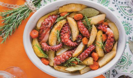 Η συνταγή για χταπόδι στο φούρνο είναι μια εξαιρετική επιλογή για όσους αγαπούν τα θαλασσινά, Συνδυάζειυπέροχα τις θαλασσινές του νότες με τα αρώματα του σκόρδου, του κρεμμυδιού και της δάφνης, ενισχυμένο από την οξύτητα του λεμονιού και του κρασιού.