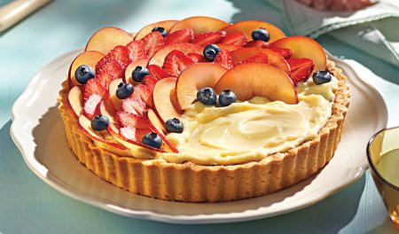Η ταρτά φρούτων είναι ένα αγαπημένο επιδόρπιο, ελαφρύ και δροσερό, ιδανικό για τους καλοκαιρινούς μήνες. Εντυπωσιάζει με το συνδυασμό της τραγανής υφής της ζύμης με την απαλή, κρεμώδη γεύση της κρέμας ζαχαροπλαστικής και τη φρεσκάδα των φρούτων.