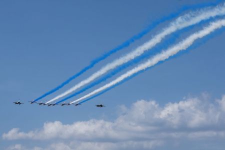 Τα μαχητικά από τη Γαλλία έκλεψαν τις εντυπώσεις, καθώς πέταξαν δίπλα στο θρυλικό αεροσκάφος Supermarine SPITFIRE MJ755 του Β’ Παγκοσμίου Πολέμου