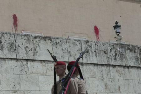 Παρέμβαση στη γερμανική πρεσβεία πραγματοποίησαν περίπου στις 4:30 το απόγευμα της Πέμπτης μέλη της αναρχικής ομάδας «Ρουβίκωνας».