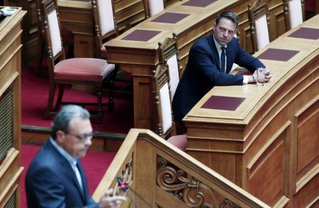 Ο διάλογος του Σωκράτη Φάμελλου με τη Λούκα Κατσέλη πριν από την κατ' ιδίαν κουβέντα που είχαν οι δυο τους στη Βουλή.