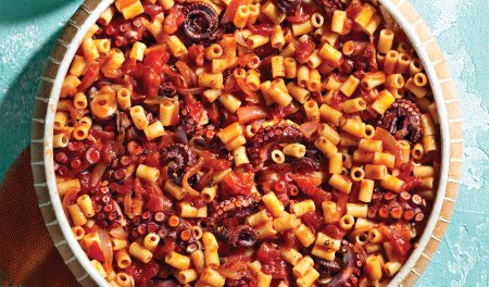 Το χταπόδι με μακαρονάκι κοφτό στο φούρνο είναι ένα παραδοσιακό ελληνικό πιάτο που αναδεικνύει τη μοναδική γεύση και υφή του χταποδιού. Ιδανικό για καλοκαιρινές συναθροίσεις, προσφέρει μια γευστική εμπειρία με θαλασσινή φρεσκάδα και μεσογειακή παράδοση.