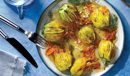 Οι ανθοί γεμιστοί αποτελούν μια από τις πιο χαρακτηριστικές και αγαπημένες συνταγές της Καρπάθου. Αυτή η παραδοσιακή συνταγή συνδυάζει τη φρεσκάδα των κολοκυθανθών με μια πλούσια γέμιση, δημιουργώντας ένα πιάτο γεμάτο γεύση και αρώματα της ελληνικής φύσης.