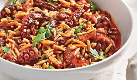 Το χταποδοπίλαφο με μιρμιτζέλι είναι ένα παραδοσιακό πιάτο που συνδυάζει το θαλασσινό άρωμα του χταποδιού με την ιδιαίτερη γεύση του μιρμιτζελιού, ενός τοπικού ζυμαρικού από την Πάρο. Πεντανόστιμο πιάτο που συνοδεύει τα μεσημεριανά τραπέζια του καλοκαιριού μας.
