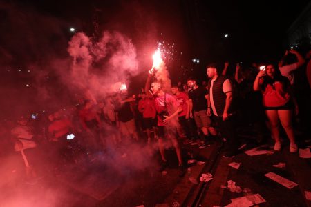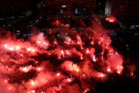Με το σφύριγμα της λήξης, ο Πειραιάς αλλά και η Ελλάδα ολόκληρη άρχισαν να παίρνουν φωτιά από τους πανηγυρισμούς που θα κρατήσουν όλη νύχτα.