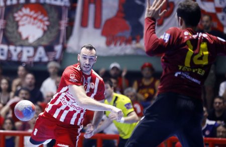 Ο Ολυμπιακός επιβλήθηκε 32-27 κόντρα στην ΑΕΚ και έκανε το 1-0 στη σειρά τελικών της Handball Premier.