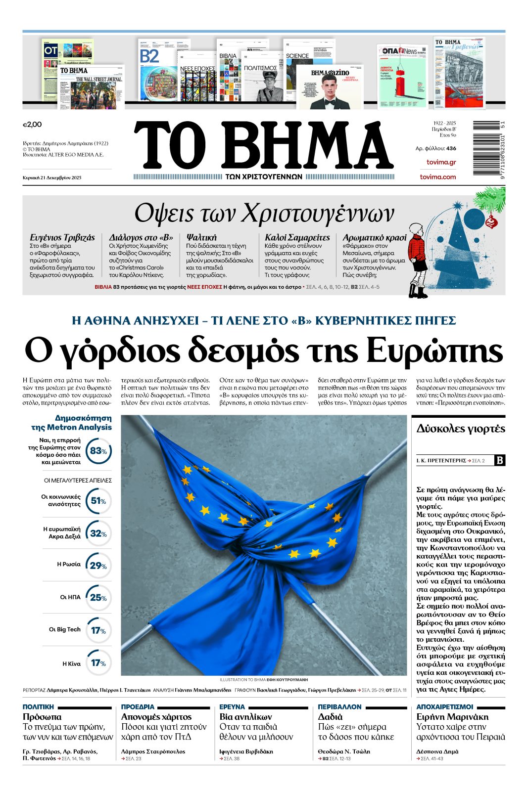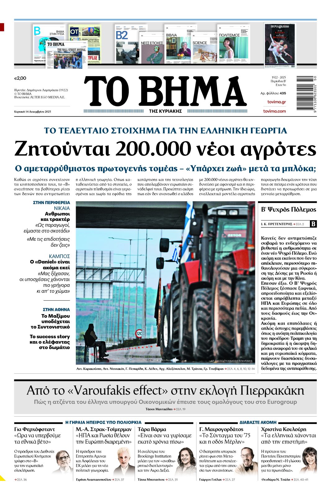 Πρωτοσέλιδο Εφημερίδας ΤΟ ΒΗΜΑ