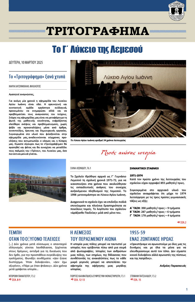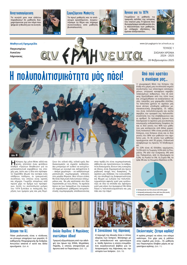 Δείτε τη γραφιστική σύνθεσηΣχολική Εφημερίδα «CHRONICLES»