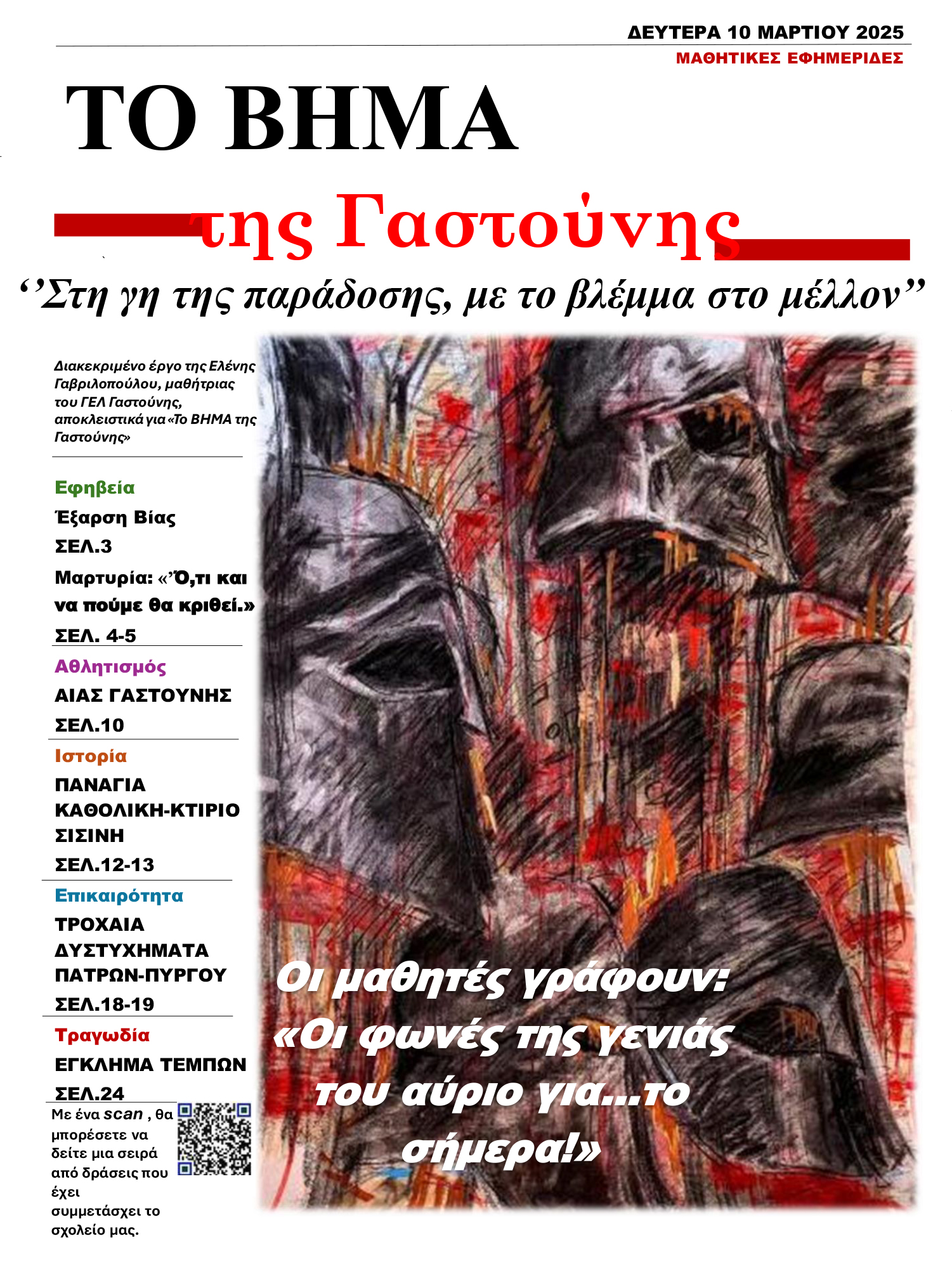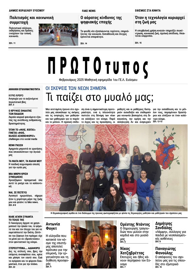 Η σχολική εφημερίδα είναι μια μοναδική ευκαιρία για τους μαθητές και τις μαθήτριες να εκφράσουν τις ιδέες τους, να συνεργαστούν και να δουν τον κόσμο με κριτικό μάτι, αναδεικνύοντας παράλληλα τον ρόλο τους ως ενεργοί πολίτες.