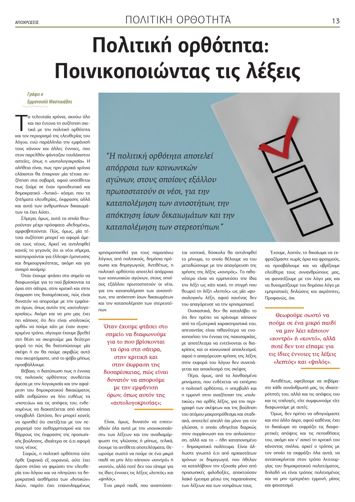 «Πολιτική Ορθότητα: Ποινικοποιώντας τις λέξεις»